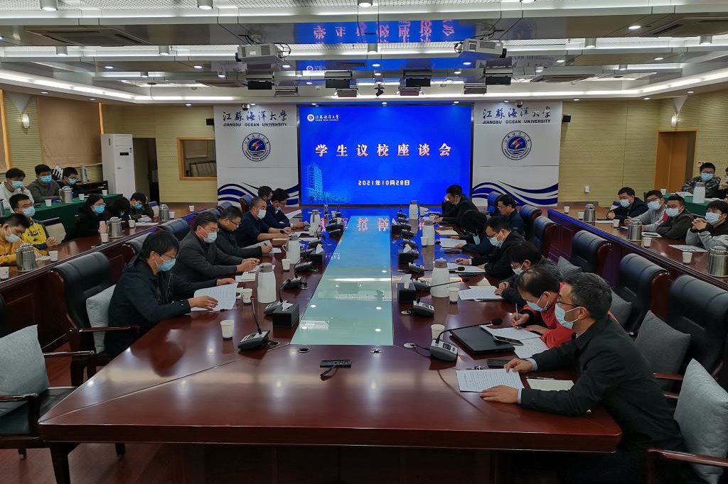 10月28日下午,我校新学期首次学生议校座谈会在会议中心东海厅召开,副校长朱国军主持会议。来自三个校区的40名学生代表参加会议,校长办公室、教务处、学生工作处、保卫处、后勤管理处、资产处、图书馆、信息化处、团委、体育学院、通灌校区管委会、宋跳校区管委会等部门负责人现场答复学生提问。