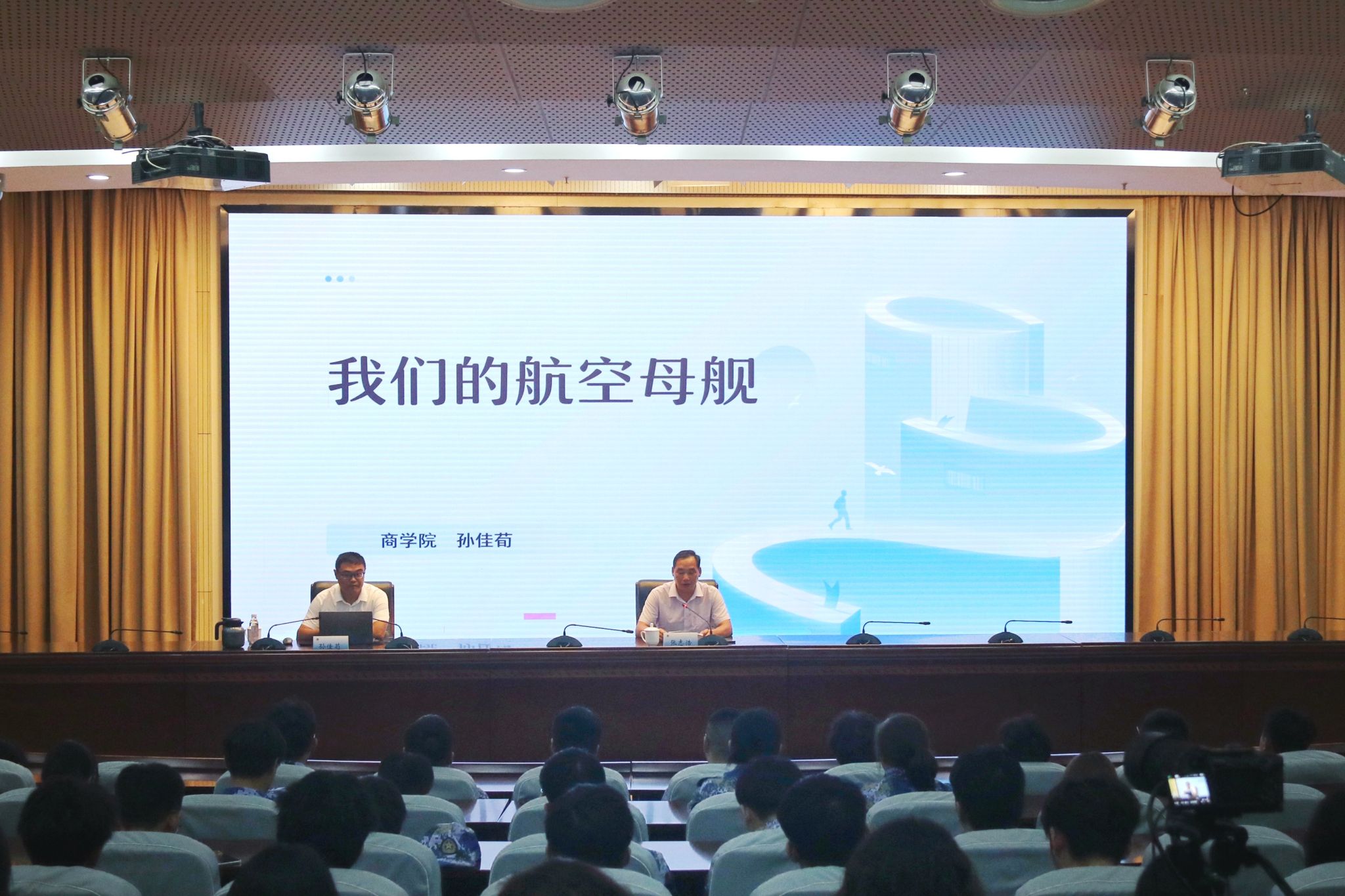 商学院辅导员孙佳荀为同学们带来《我们的航空母舰》专题讲座。孙佳荀从近代先驱、反攻妄想、崭新一页、柳暗花明、抢抓机遇、再接再厉、尖端科技六个方面,系统讲述了航母本身和我国航母发展的历程。在党的领导下,广大科技工作者和人民群众为实现我国武器装备现代化做出了不懈努力。我国航母发展之路,虽起步较晚,却充满了砥砺奋进的磅礴力量。