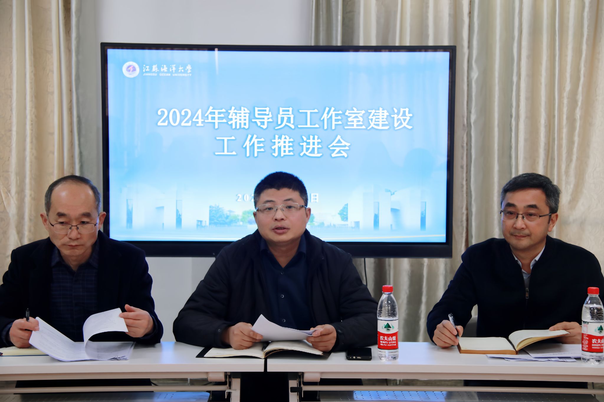 为打造我校学生工作特色阵地,不断提高辅导员专业水平和职业能力,3月26日下午,副校长朱国军在“一站式”学生社区主持召开2024年辅导员工作室建设工作推进会,招生与就业处处长马恒通、副处长骆海宏,学生工作处处长陈德翼、副处长李海南,各辅导员工作室负责人以及相关工作人员参会交流研讨。