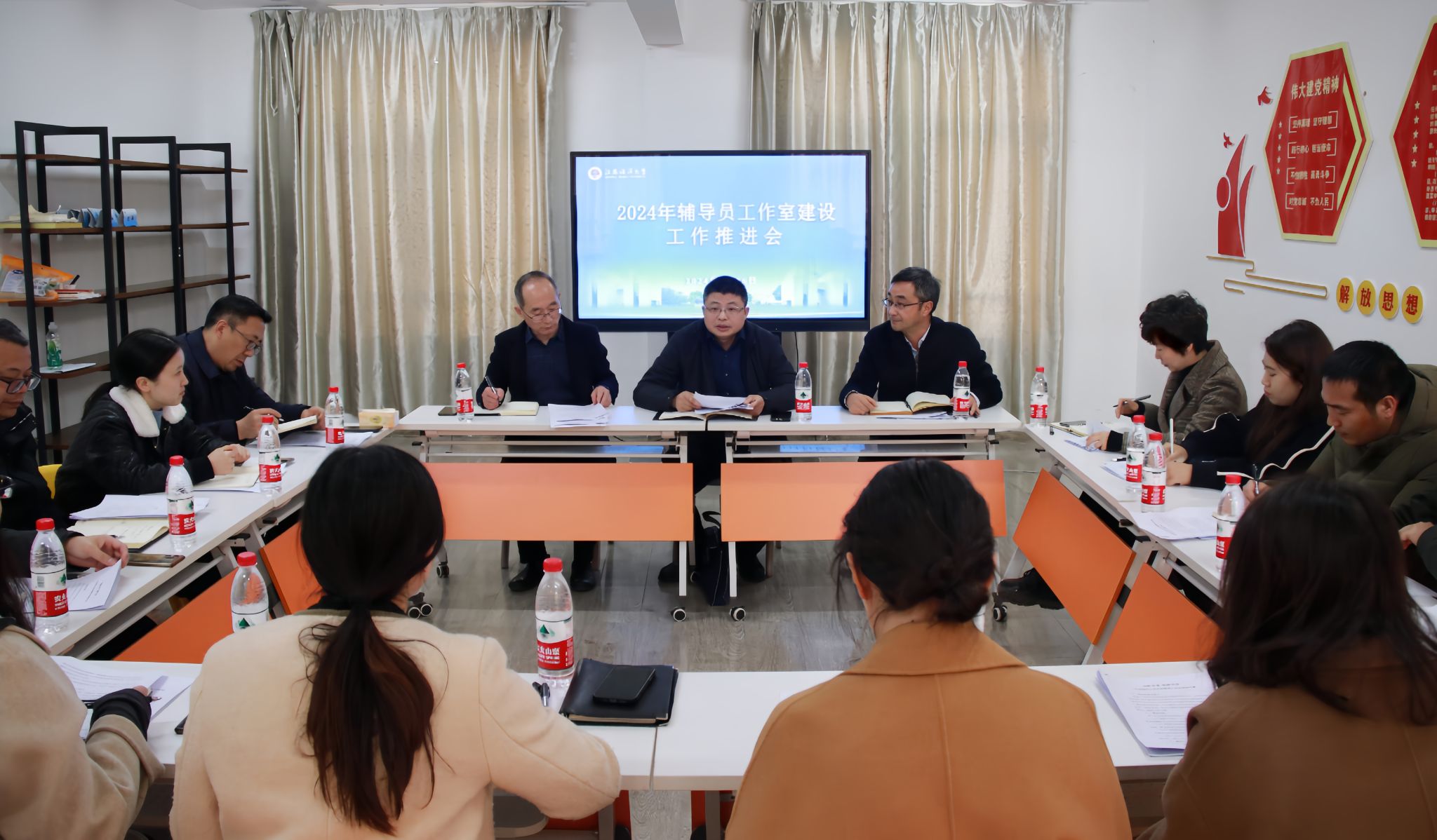 会上,网络思政工作室、心理危机事件预警及处理工作室、生涯规划工作室以及社会主义核心价值观工作室负责人就工作室建设情况、2024年重点工作以及如何推进落实等方面进行汇报交流。参会人员围绕工作室建设方向、定位和目标、作用发挥以及如何打造辅导员工作室品牌活动等方面进行深入探讨交流,启发工作思路。