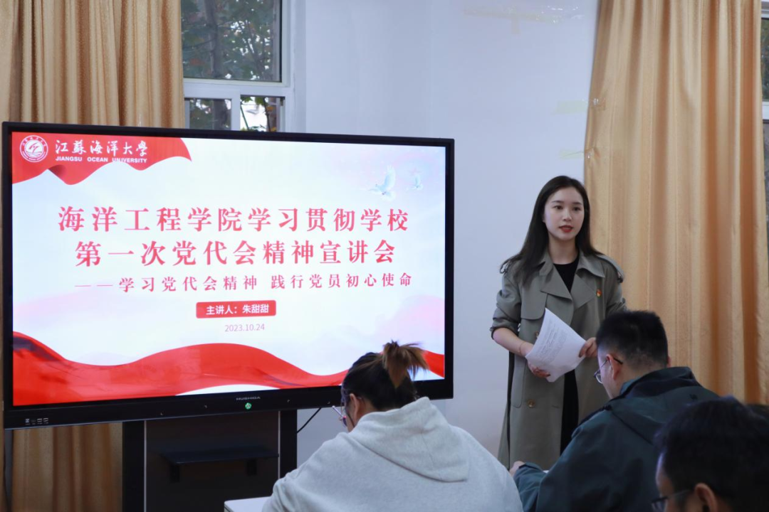 会上,朱甜甜老师介绍了学校自更名以来第一次党代会召开情况,带领大家集中学习了学校党委书记许峰以“深化转型发展,强化改革赋能,奋力谱写高水平应用研究型海洋大学建设新篇章”为题的党代会报告。把学校党委关于近五年工作的总结和下一个五年的总体部署向大家进行了详细解读。