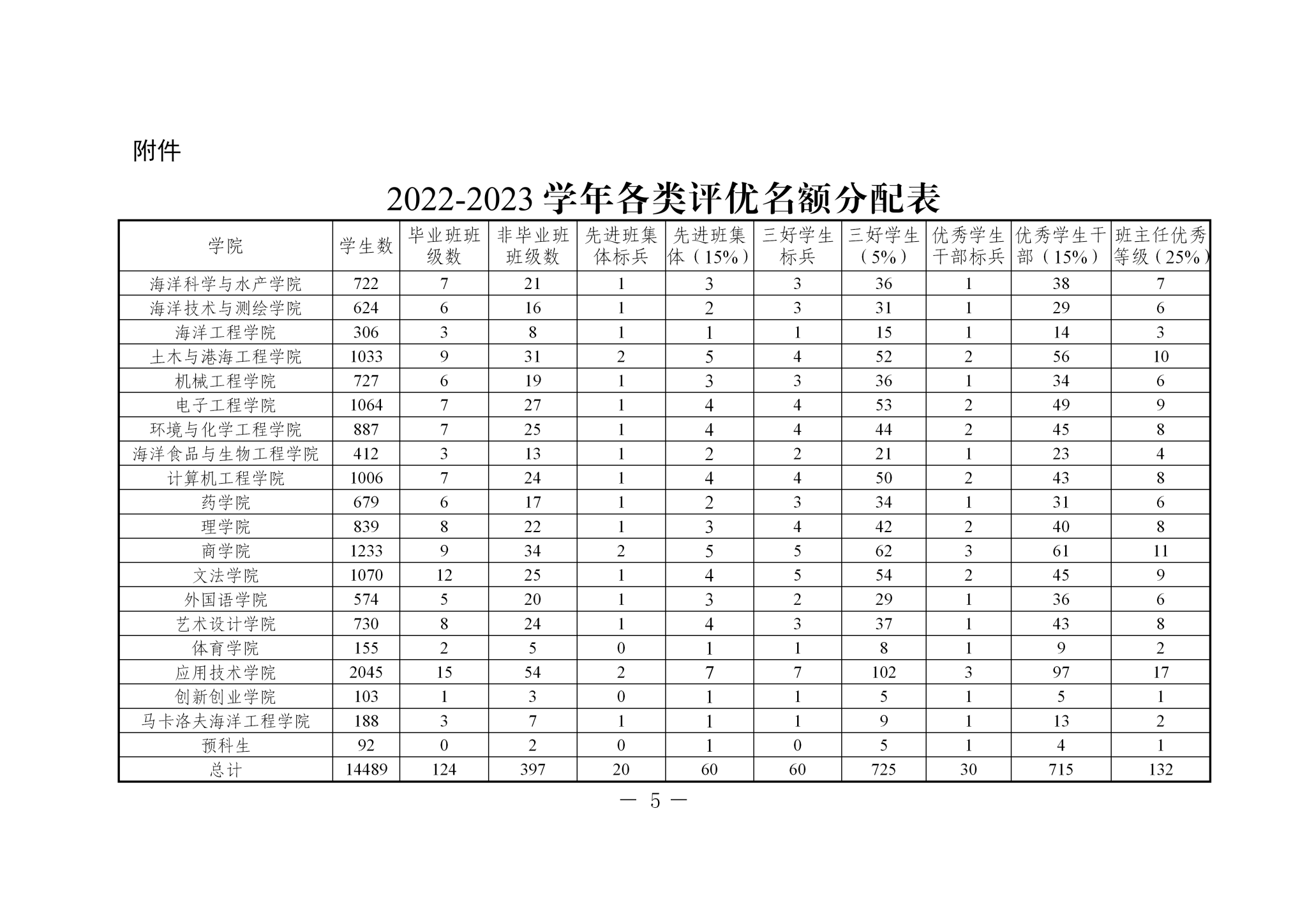 附件:2022-2023学年各类评优名额分配表