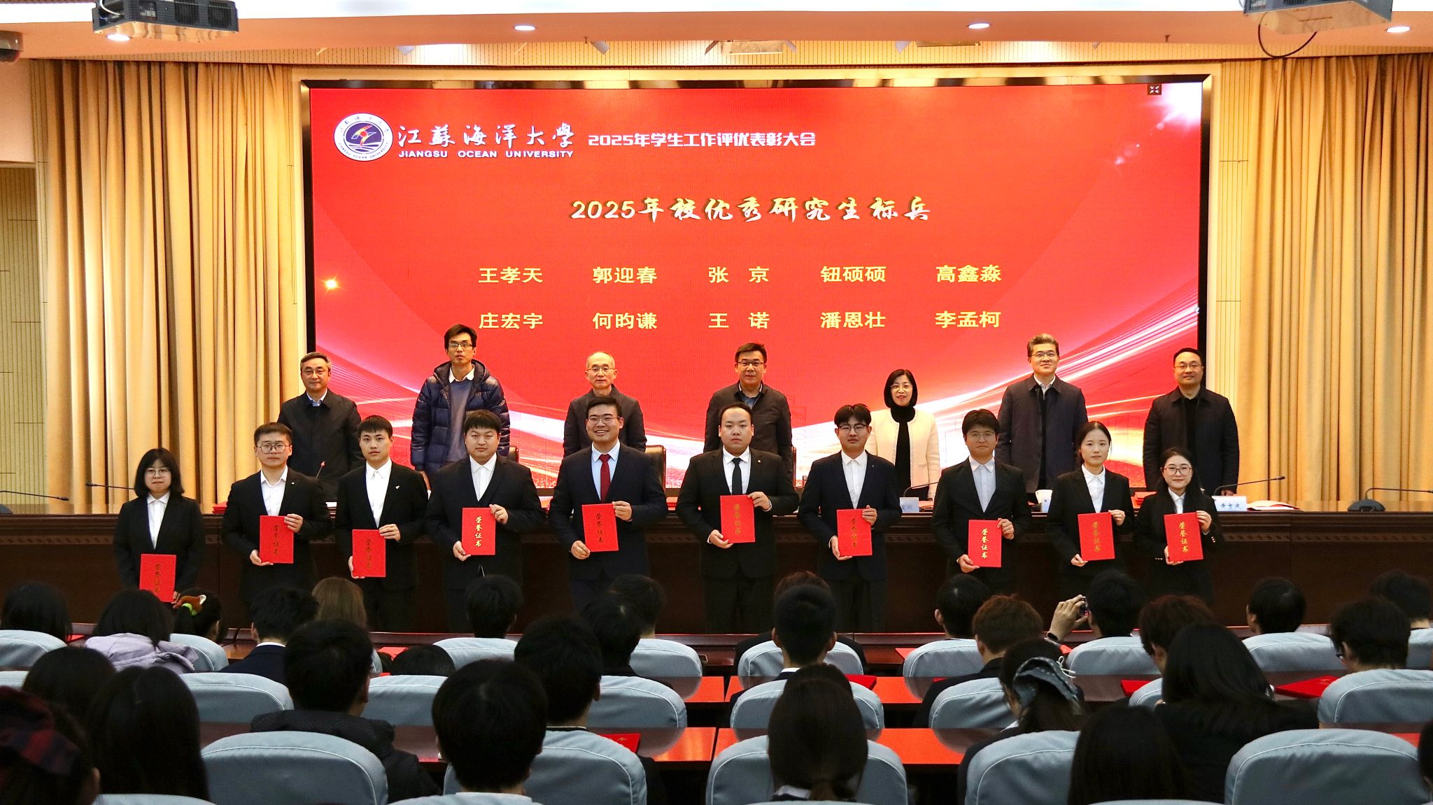 学生工作处、党委研究生工作部、教务处、招生与就业处、保卫处、团委等职能部门负责人,各学院党委副书记、全体辅导员、受表彰师生代表参会。