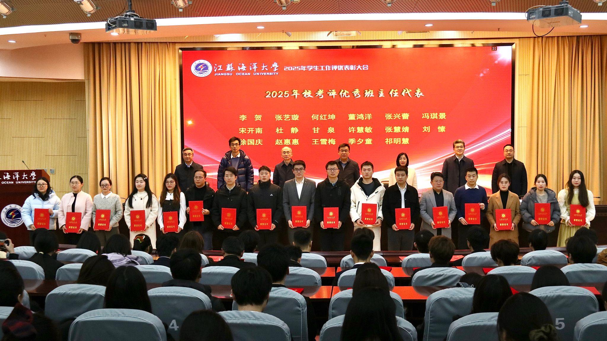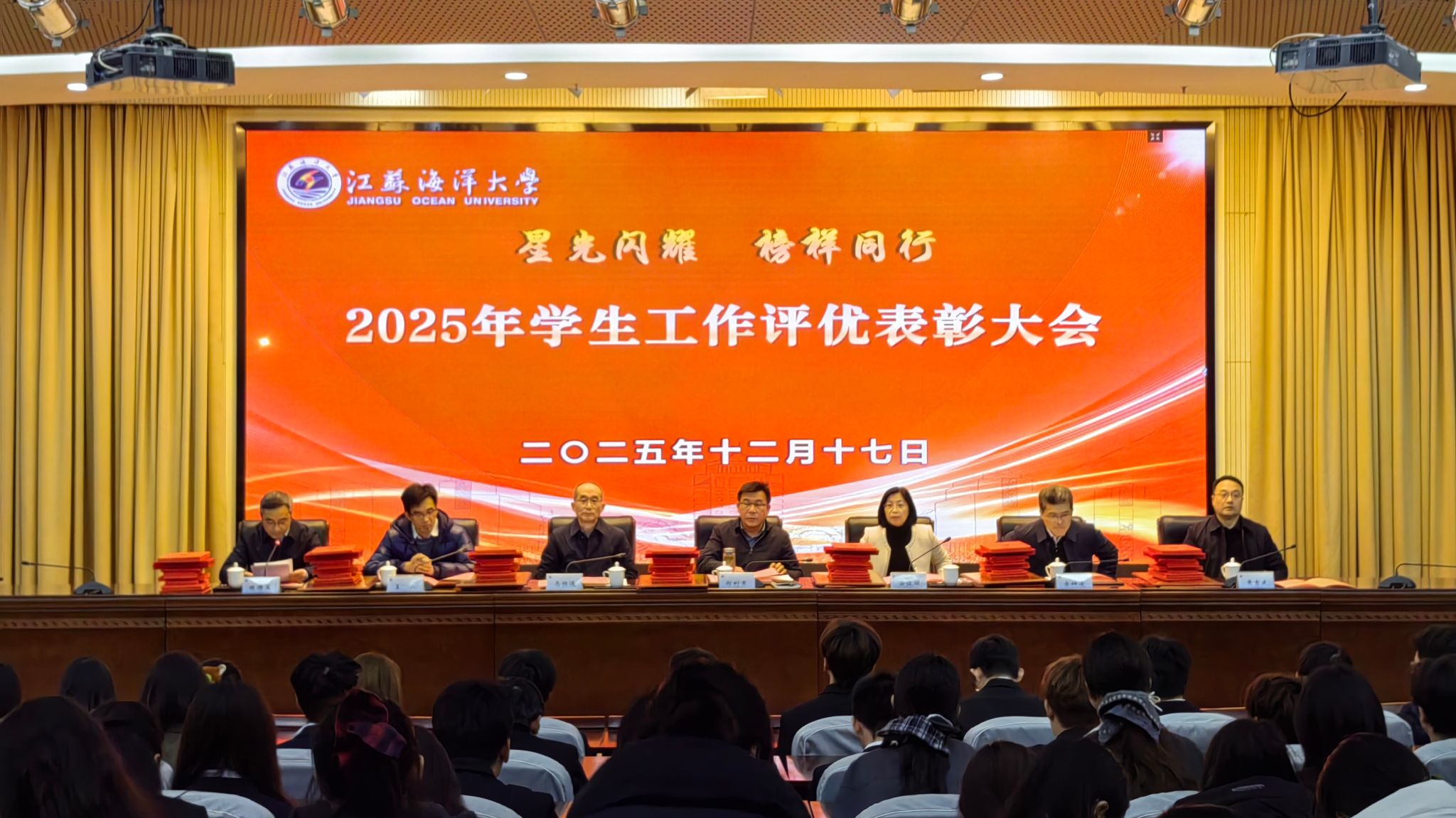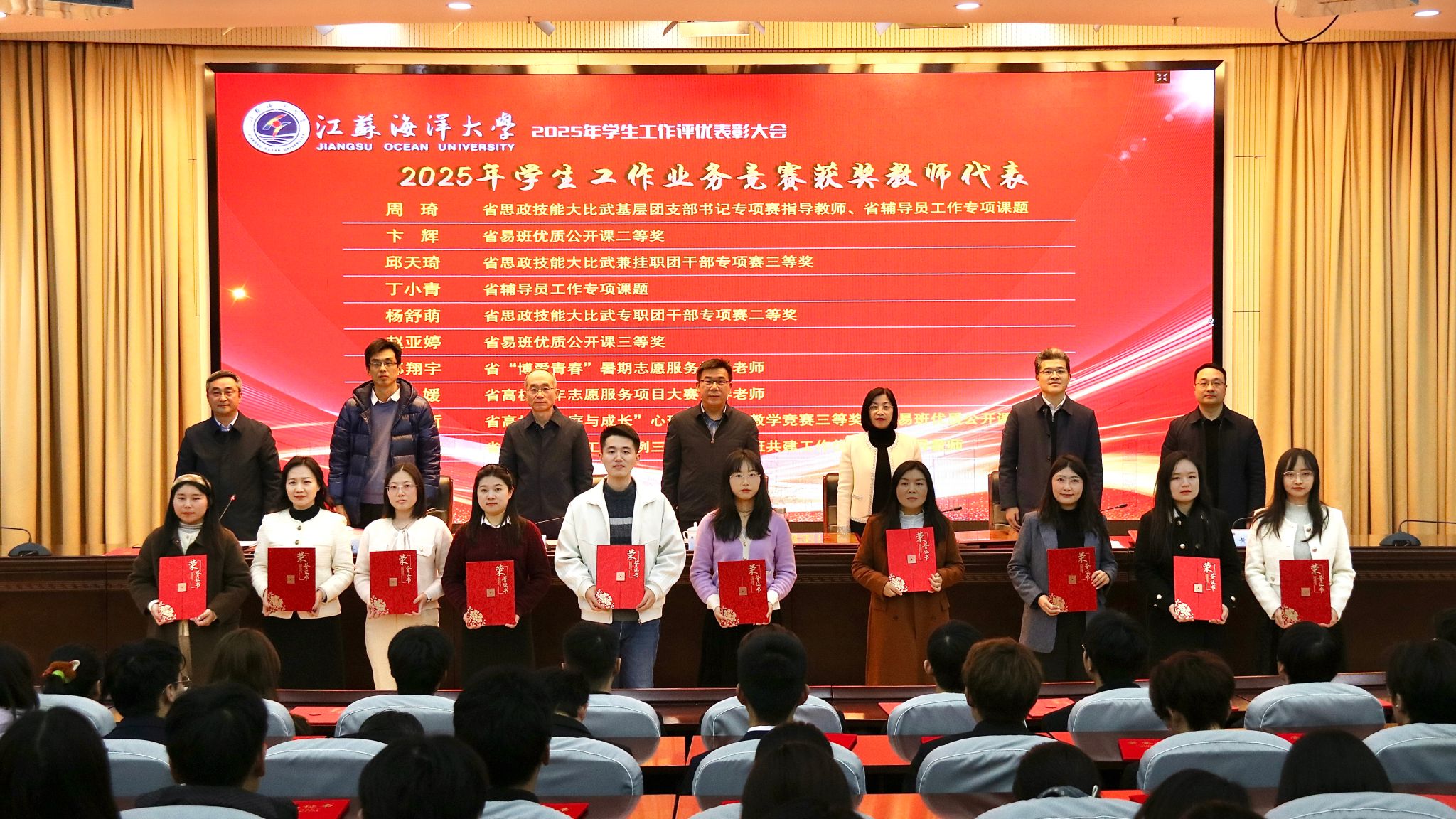 12月17日下午,我校在会议中心黄海厅举行2025年学生工作评优表彰大会,对一年来学生工作中各类先进集体和优秀个人进行表彰。党委常委、副校长郑利军出席本次会议。会议由学生工作处处长陈德翼主持。