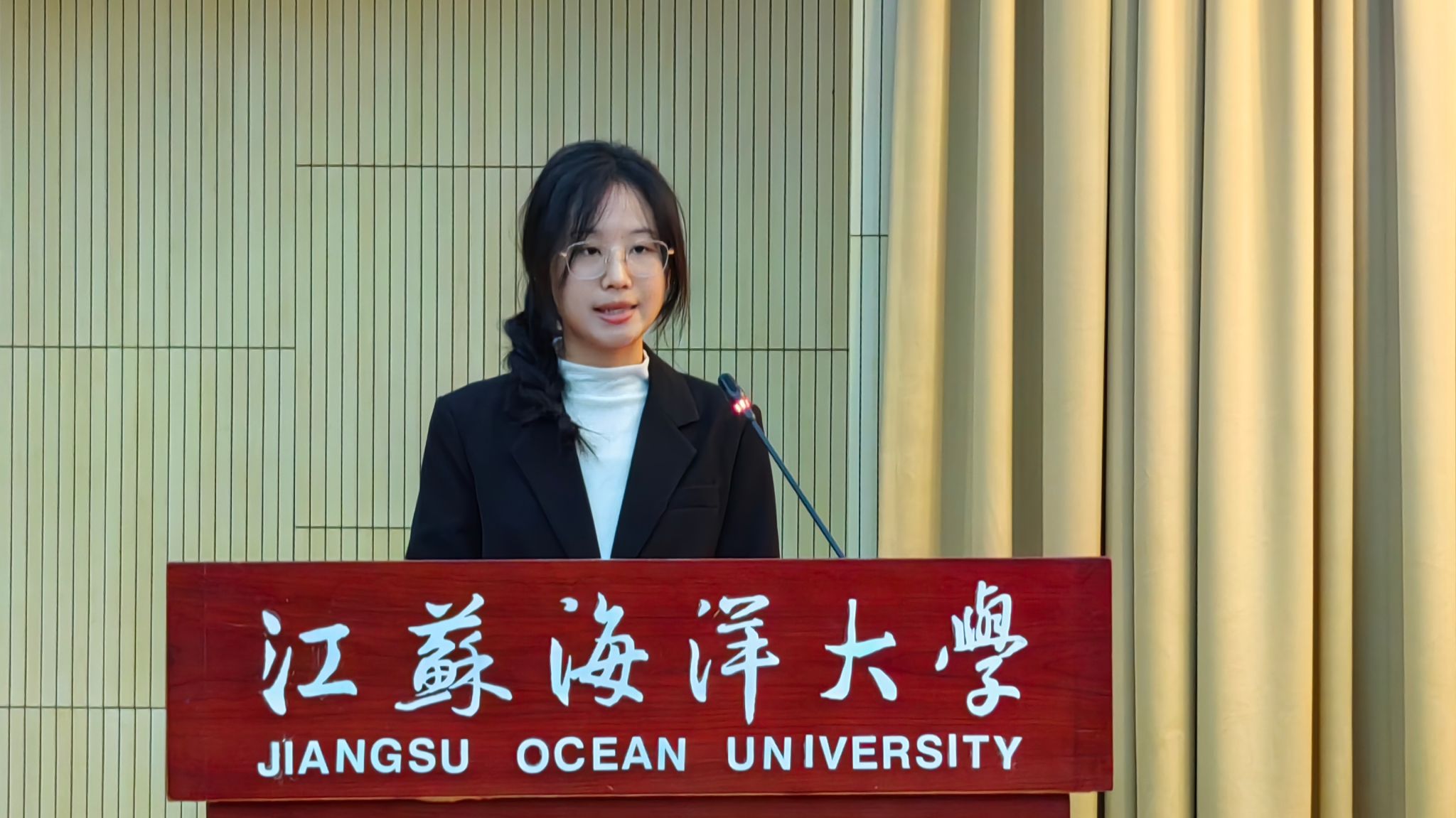 学生代表、省“博爱青春”暑期志愿服务项目金奖获得者、应用技术学院顾陈分享了她坚持以学业为本在专注中“比学赶帮超”,以担当为责在实践中淬炼坚毅品格,以服务为魂在奉献中擦亮青春底色的奋斗故事。教师代表、机械工程学院辅导员陈晓龙以“共绘深蓝画卷,同育时代新人”为题分享了他将学校海洋特色与思政教育深度融合,在润物无声中守护学生成长成才的做法和感悟。