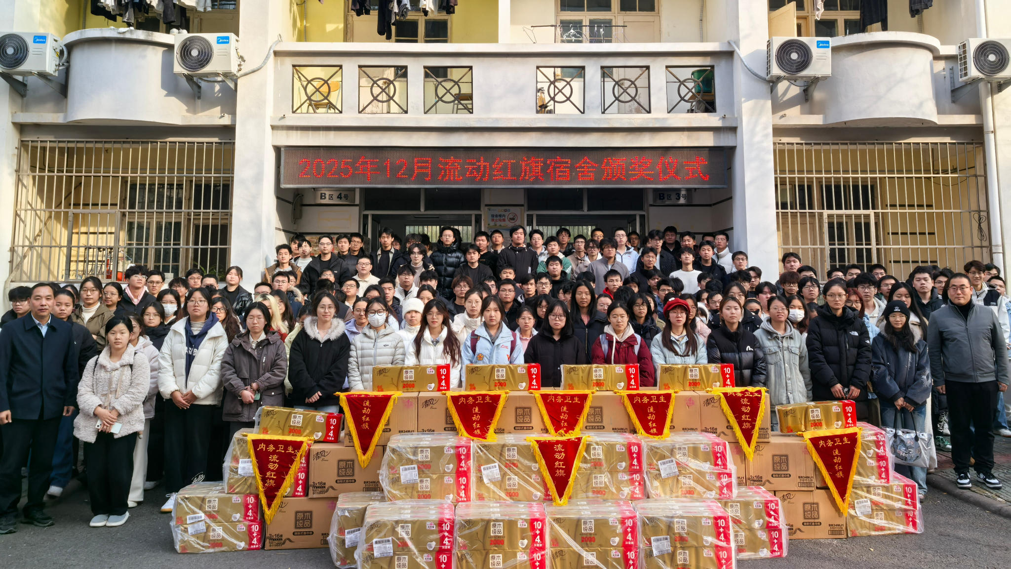 以“流动红旗”宿舍创建为载体,在潜移默化中培养同学们的自律意识与集体荣誉感,激励周围宿舍形成“比学赶超”的精神,从扫一屋出发,开启勇往直前的征程。