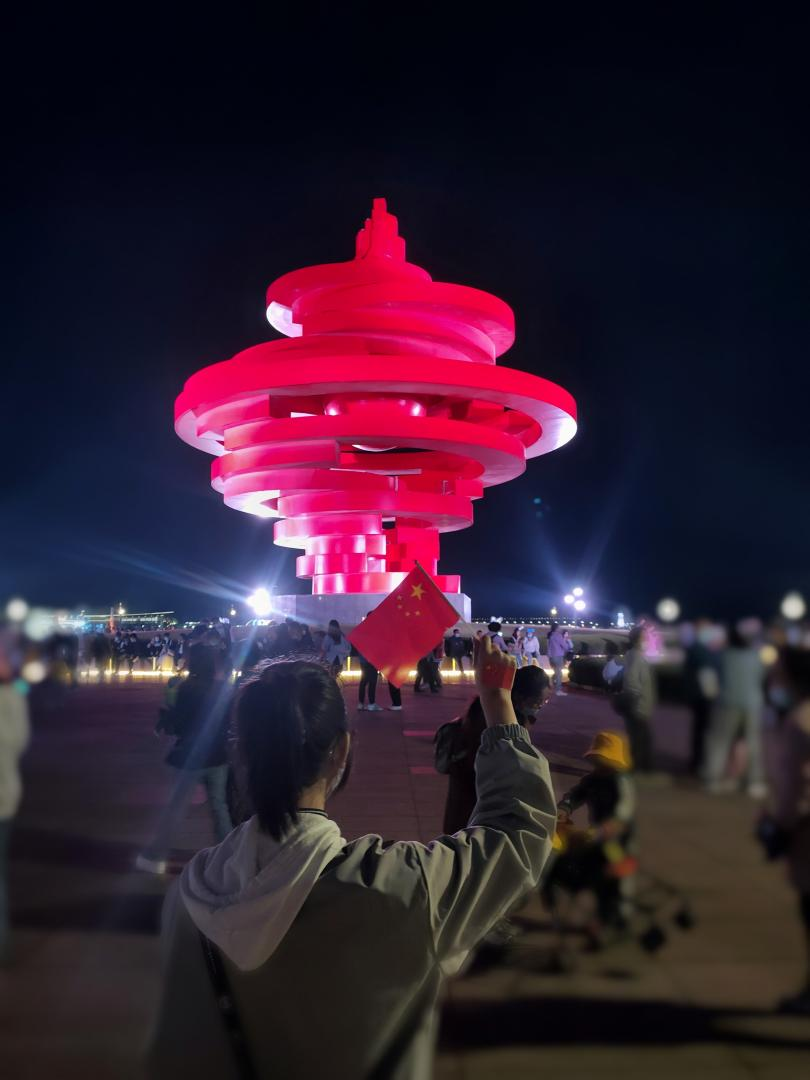 现在,我站在青岛这片土地上,一瞬间百感交集。青岛五月的风吹动了我手中的五星红旗,在这一刻,我坚定地对自己说,我一定会永远热爱我的祖国!(管理202王妍)