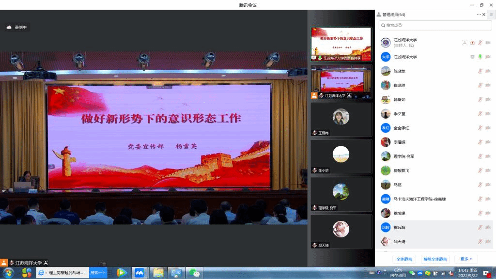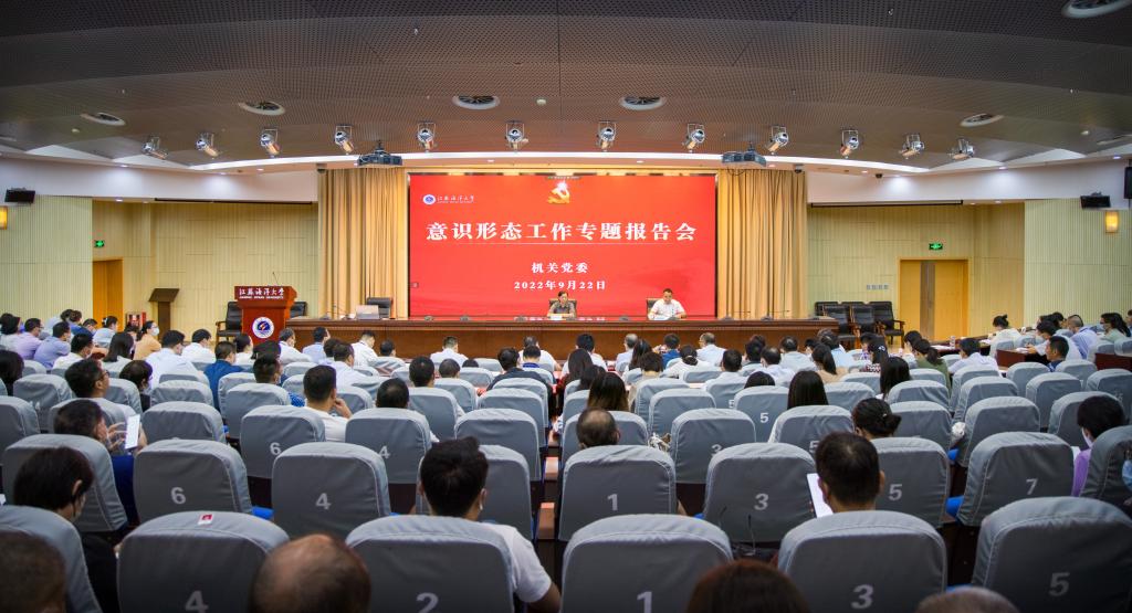 为深入学习习近平新时代中国特色社会主义思想,学习贯彻落实中央、省委和学校党委关于意识形态工作的部署要求,推动意识形态工作责任制落实落细落地,9月22日下午,校党委常委、党委宣传部部长杨雪英教授在会议中心黄海厅作意识形态工作专题辅导报告。