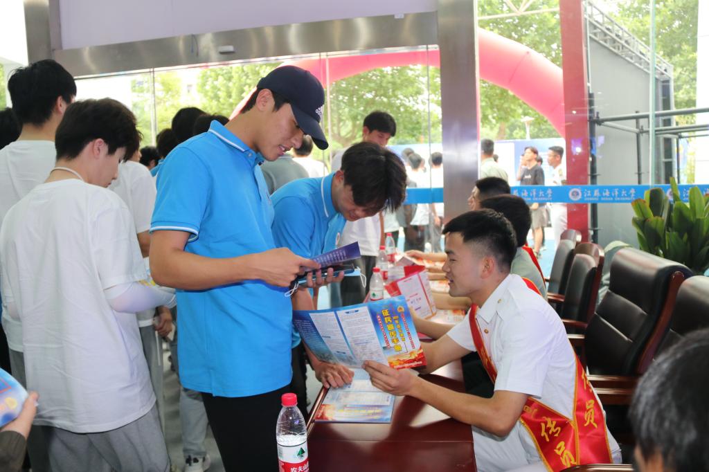 为深入贯彻落实中央军委国防动员部、教育部、人力资源和社会保障部、共青团中央联合印发的《关于印发<兵员预征预储工作暂行办法>的通知》精神,扎实做好兵员预征预储工作,进一步提高兵员征集质量,6月13日下午,连云港市2023年高校征兵宣传暨江苏海洋大学“优质兵员预征预储示范基地”揭牌仪式在我校隆重举行。连云港市委常委、连云港警备区司令员王先桥,我校校长宁晓明、副校长朱国军,连云港市征兵办主任、连云港警备区动员处处长姜齐,海州区人武部部长于程出席仪式。市、区教育局、人社局、团委领导,驻连各高校领导和300余名学生代表参加。揭牌仪式由连云港警备区政委李迎久主持。