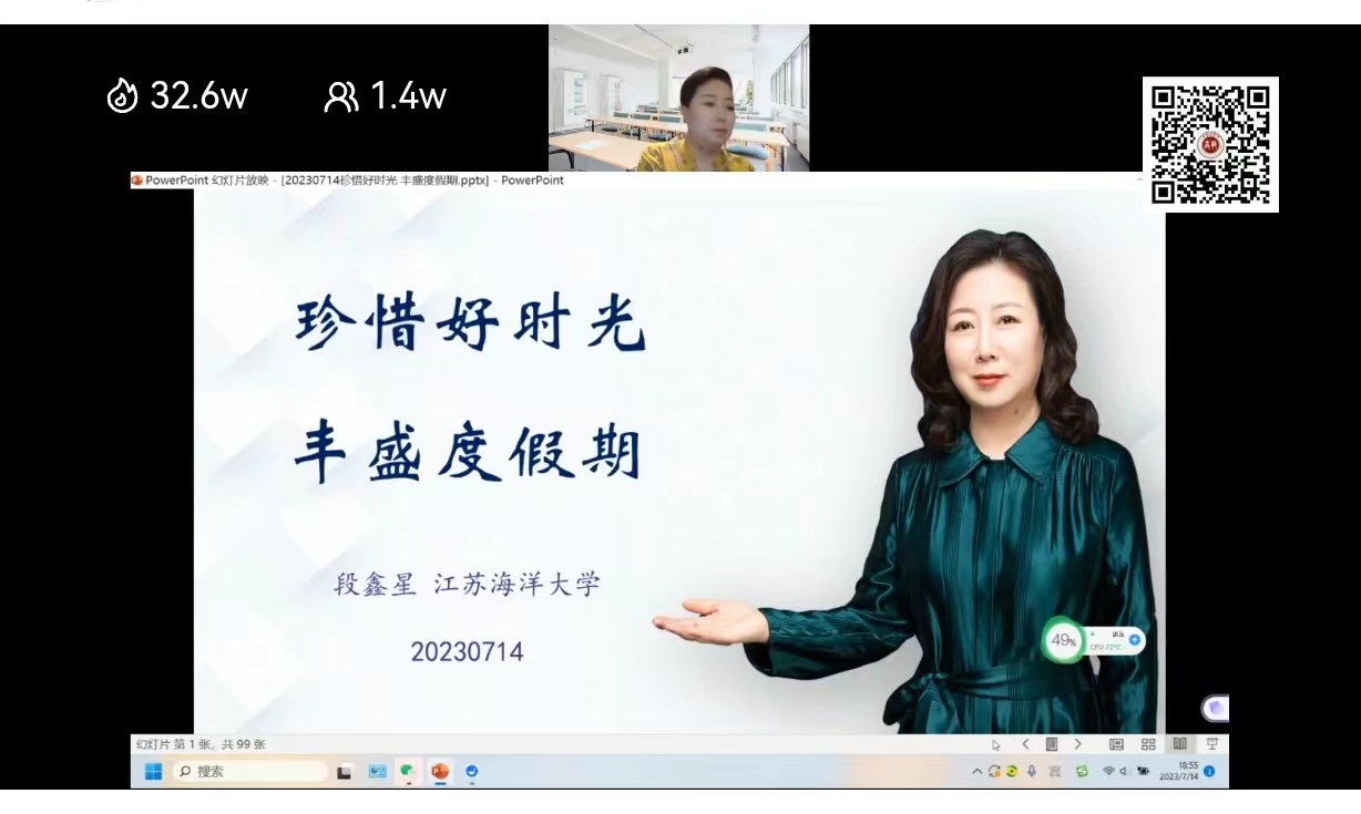 7月14日晚,由学生工作处组织的线上家长课堂顺利开讲,本次讲座由中国矿业大学博士生导师、北京师范大学心理学博士段鑫星教授主讲,讲座主题为“珍惜好时光,丰盛度假期”。讲座共吸引1.4万名学生家长参与,直播浏览量达到32.6万。
