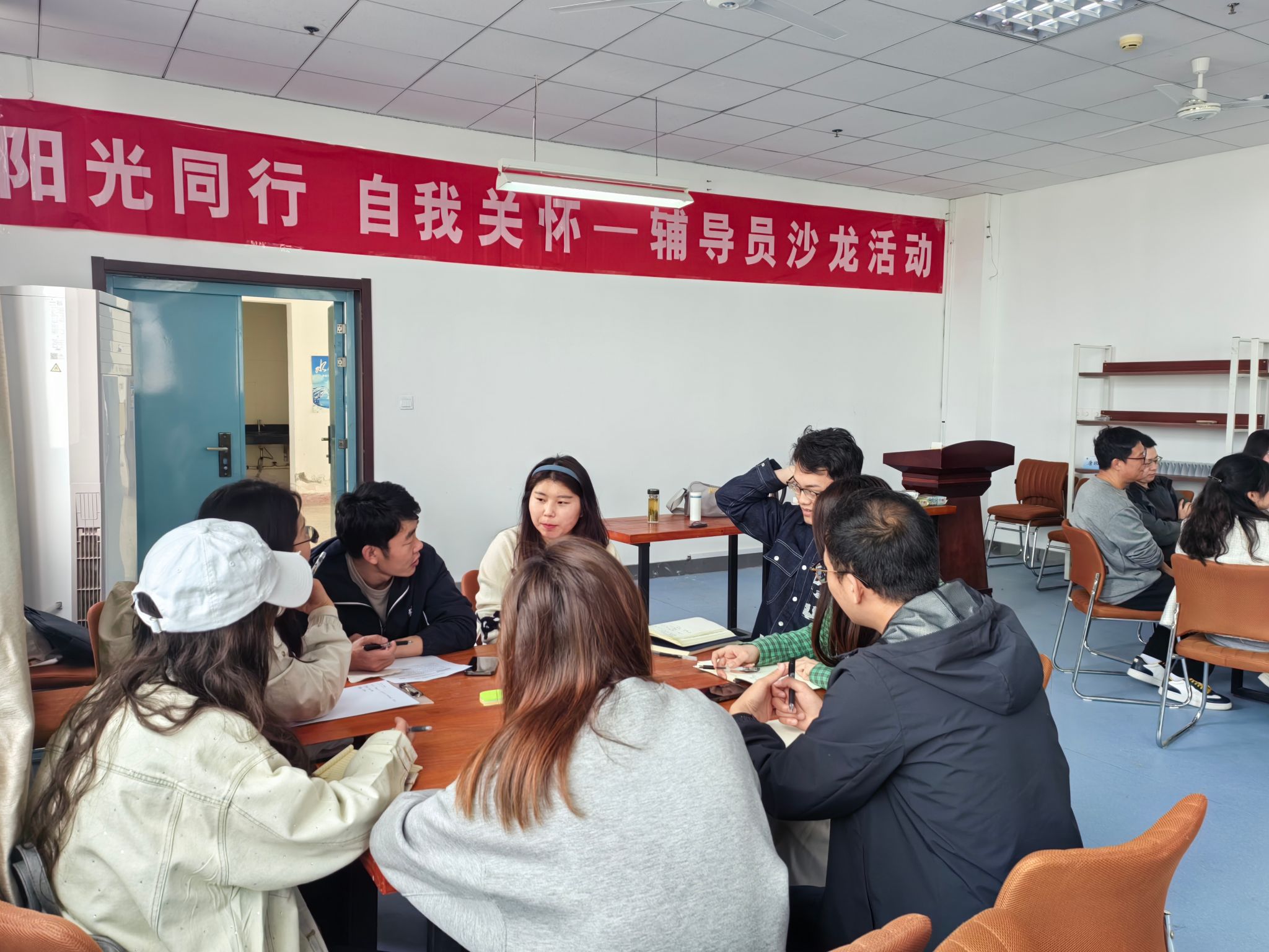 沙龙以自我关怀理论为基础,以团体心理辅导为载体,采取自我介绍、经验分享、互动研讨的方式进行,内容涵盖学生心理、资助、辅导员个人发展和职业规划等,旨在为辅导员提供一个经验分享、互帮互助的平台。