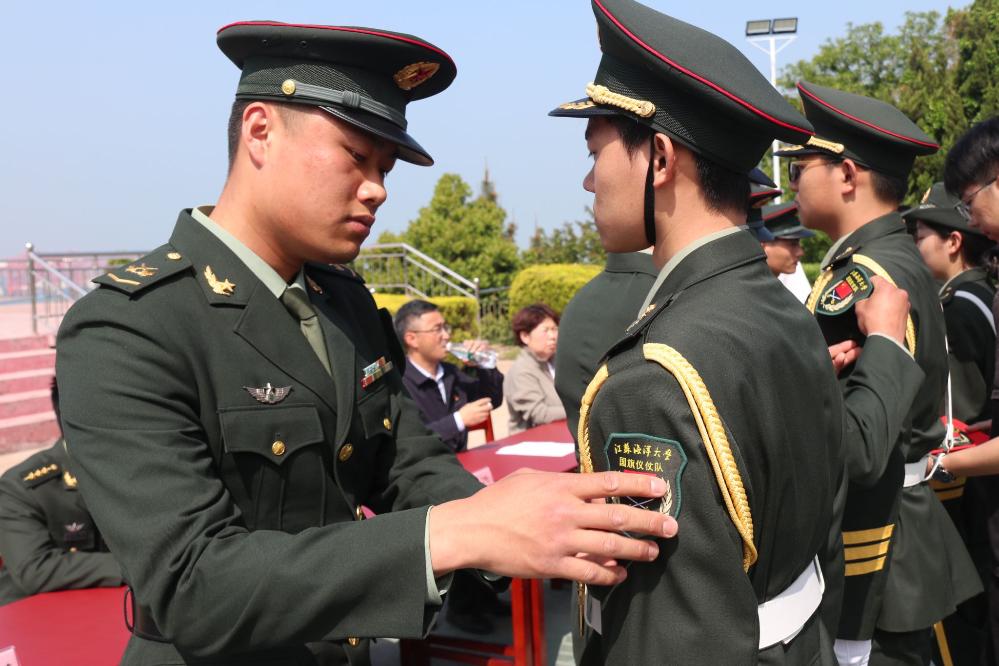 六位优秀官兵被聘为江苏海洋大学国旗仪仗队校外指导老师,并为国旗仪仗队新入队队员佩戴肩章,这标志着他们顺利通过考核期,正式成为校国旗仪仗队的一员。马克思主义学院青年博士教师倪念念结合部队军民共建的优良传统与连云港沿海开放40周年取得的巨大成就,为在场师生、部队官兵带来一堂生动的爱国思政课。随后,在连队指导员凌奕晖的带领下,我校师生参观连史馆,近距离观看官兵队列训练,沉浸式体悟“军民团结如一人,试看天下谁能敌”的伟大真理。