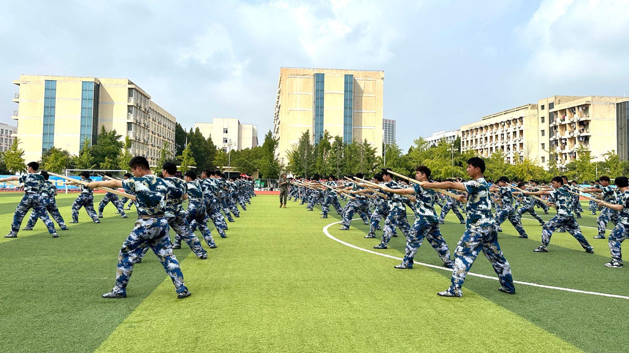 值中秋节来临之际,朱国军首先代表学校向全体参训学员致以节日的热烈祝贺,向坚守岗位的承训部队教官和军训指导员表示衷心的感谢。他走进训练场检查训练情况并与同学们亲切交谈。朱国军勉励同学们要刻苦训练,磨砺意志,强健体魄,以饱满的精神状态投入到训练中,为接下来的学习生活打下良好的基础。