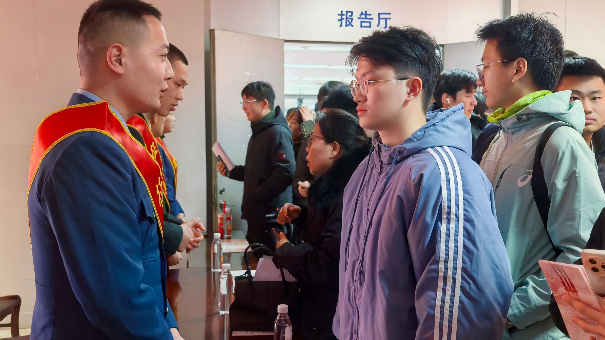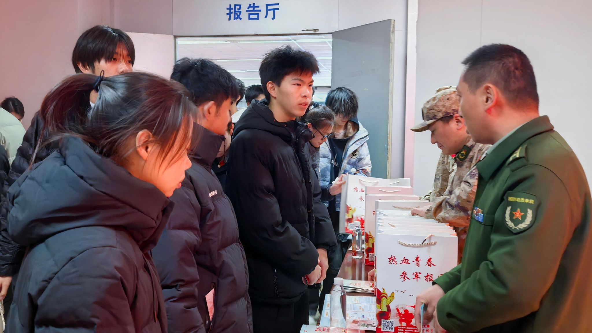 活动结束后,由赣榆区人民武装部和我校退役大学生组成的征兵宣传员向同学们讲解征兵优惠政策与应征报名流程,面对面交流咨询。