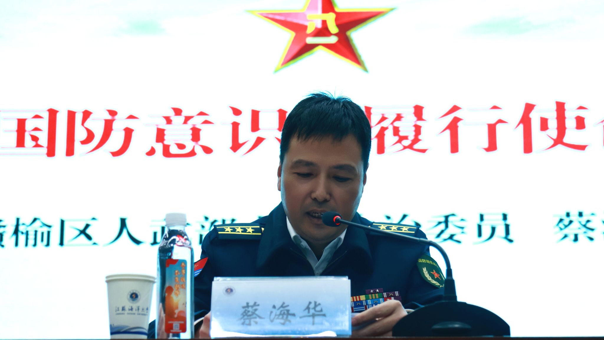 蔡海华做国防教育授课。他分别从为什么要开展国防教育、人民军队的基本情况、国家安全面临的风险挑战、新时代大学生要积极投身国防事业四个方面,阐述了国防教育是国家战略所需,是增强国防观念所需,是维护国际公平正义所需。通过讲解人民军队的基本知识、入伍的相关优待政策等,帮助同学们进一步了解我国军队的构成,强化了入伍意向。而我国国家安全面临的前所未有的风险挑战,更是提醒同学们要提升军事素养,积极应征入伍,培树家国情怀。