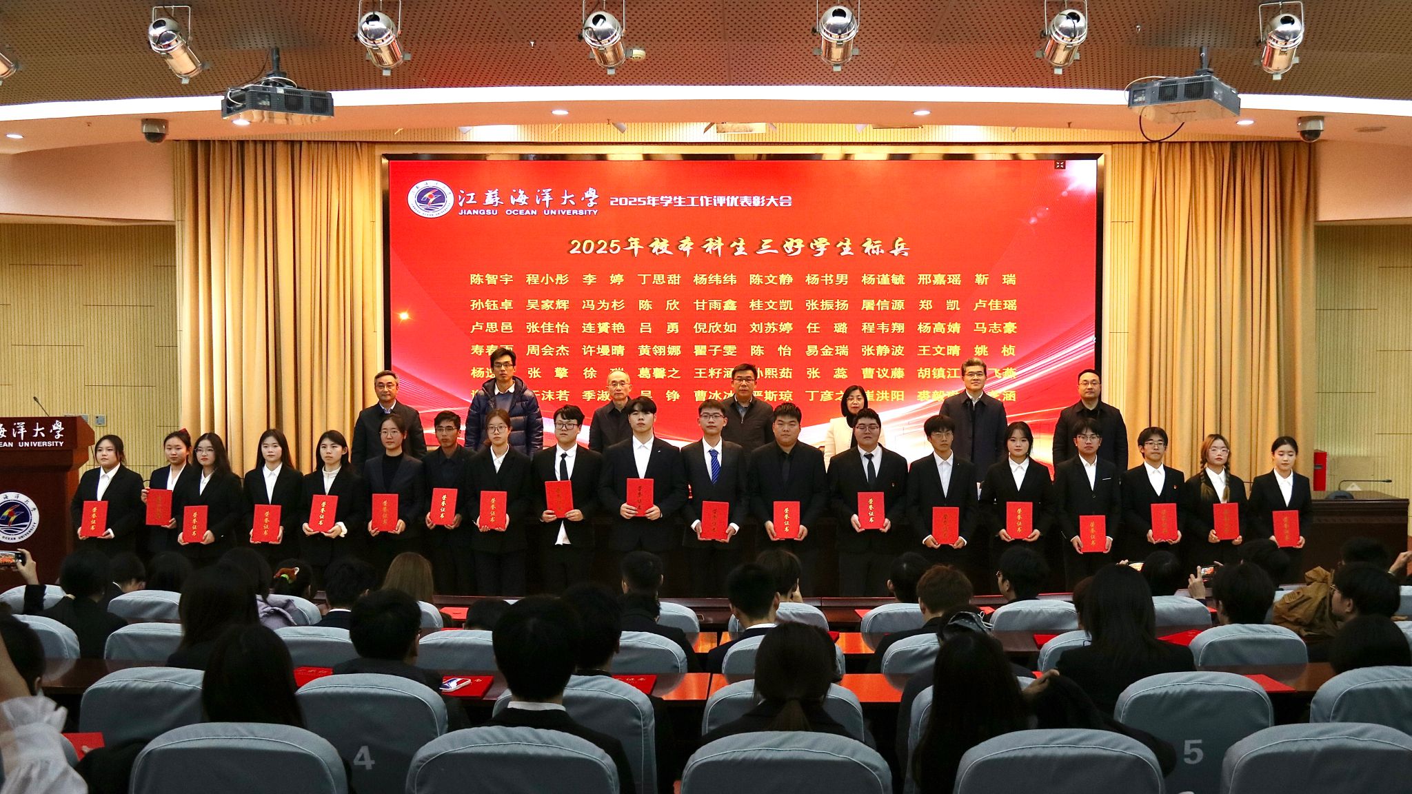 12月17日下午,我校在会议中心黄海厅举行2025年学生工作评优表彰大会,对一年来学生工作中各类先进集体和优秀个人进行表彰。党委常委、副校长郑利军出席本次会议。会议由学生工作处处长陈德翼主持。