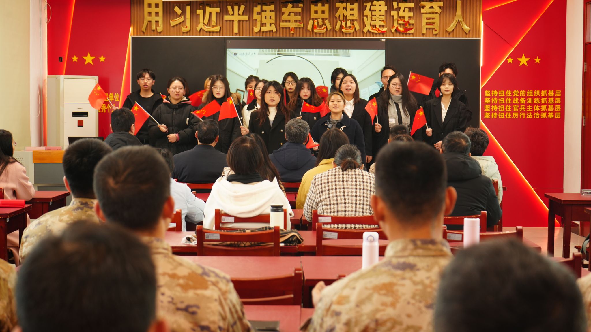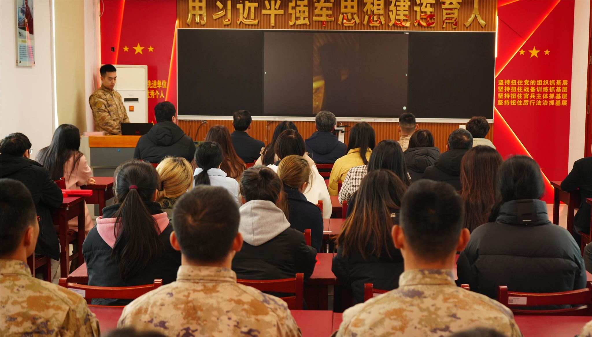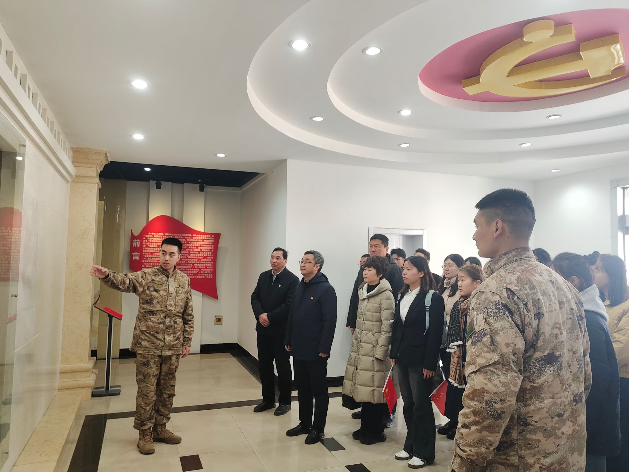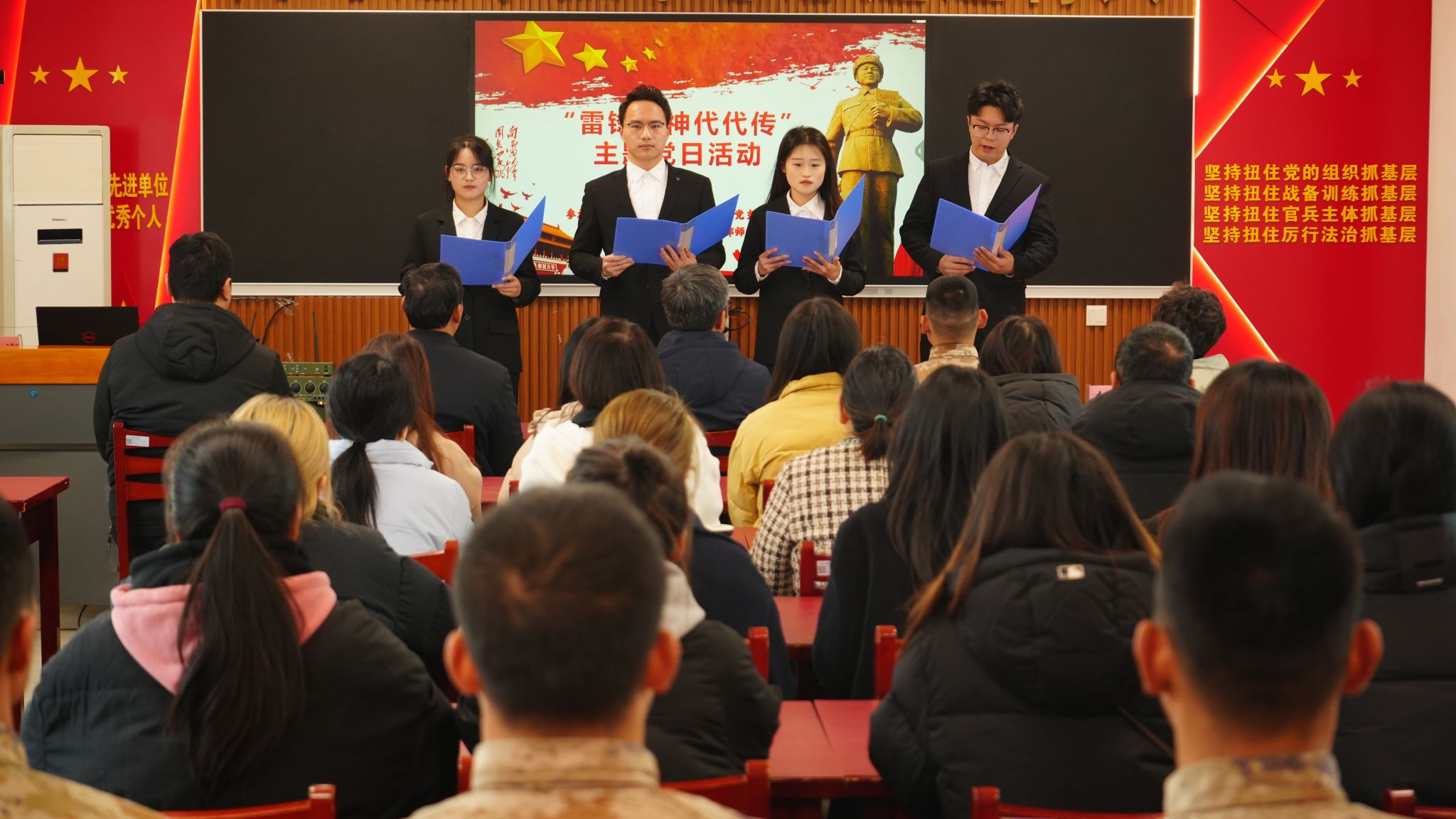 为深入贯彻落实习近平总书记关于弘扬雷锋精神的重要指示精神,继续深化拓展学雷锋活动,3月2日上午,在学习雷锋纪念日前期,我校机关第十党支部、商学院团委、商学院学生第三党支部的师生党员来到“军民联防模范连”31609部队41分队营区进行支部共建,共同开展“雷锋精神代代传”主题党日活动。校人民武装部部长陈德翼、副部长张志浩,校机关第十党支部、商学院团委、商学院学生第三党支部的师生党员共同参加活动。31609部队41分队连长李建、政治指导员凌奕晖及全体官兵热情接待了参加见学的师生。