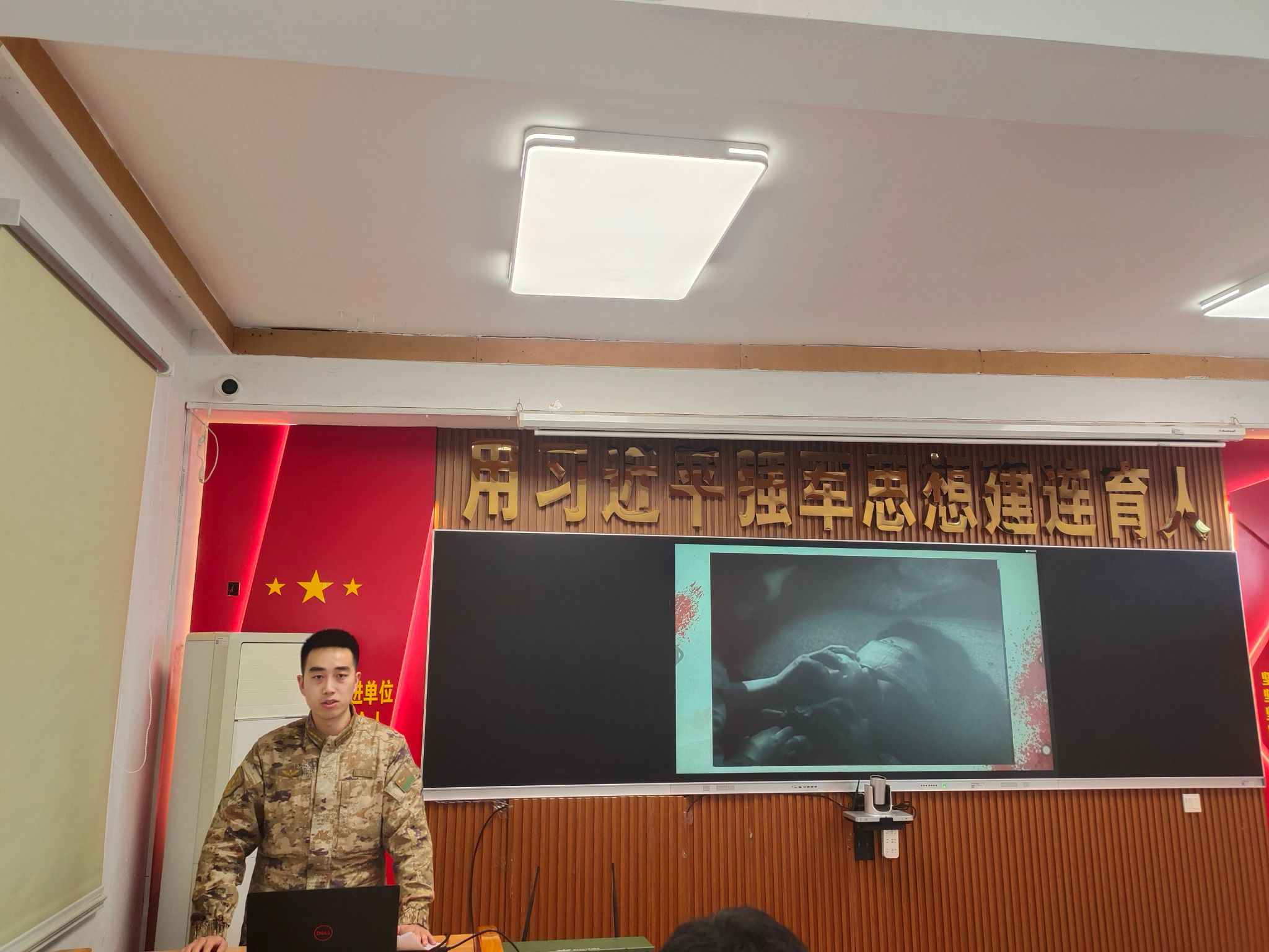 凌奕晖为前来参加活动的师生党员和官兵们上了一堂生动形象的爱国主义思想教育微课。通过对“上甘岭战役”等的讲述,引发了大家的深深共鸣,和平年代,我们更要用实际行动去捍卫精神家园,不忘革命先辈们的牺牲奉献。