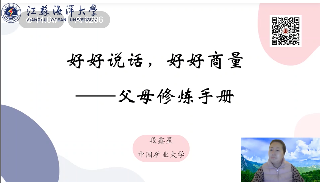 2月24日晚,由学生工作处组织的线上家长课堂顺利开讲,本次讲座由中国矿业大学博士生导师,北京师范大学心理学博士段鑫星教授主讲,讲座主题为“好好说话 好好商量——父母修炼手册”,讲座吸引了6000多名学生家长参与,直播浏览量达到14.6万。