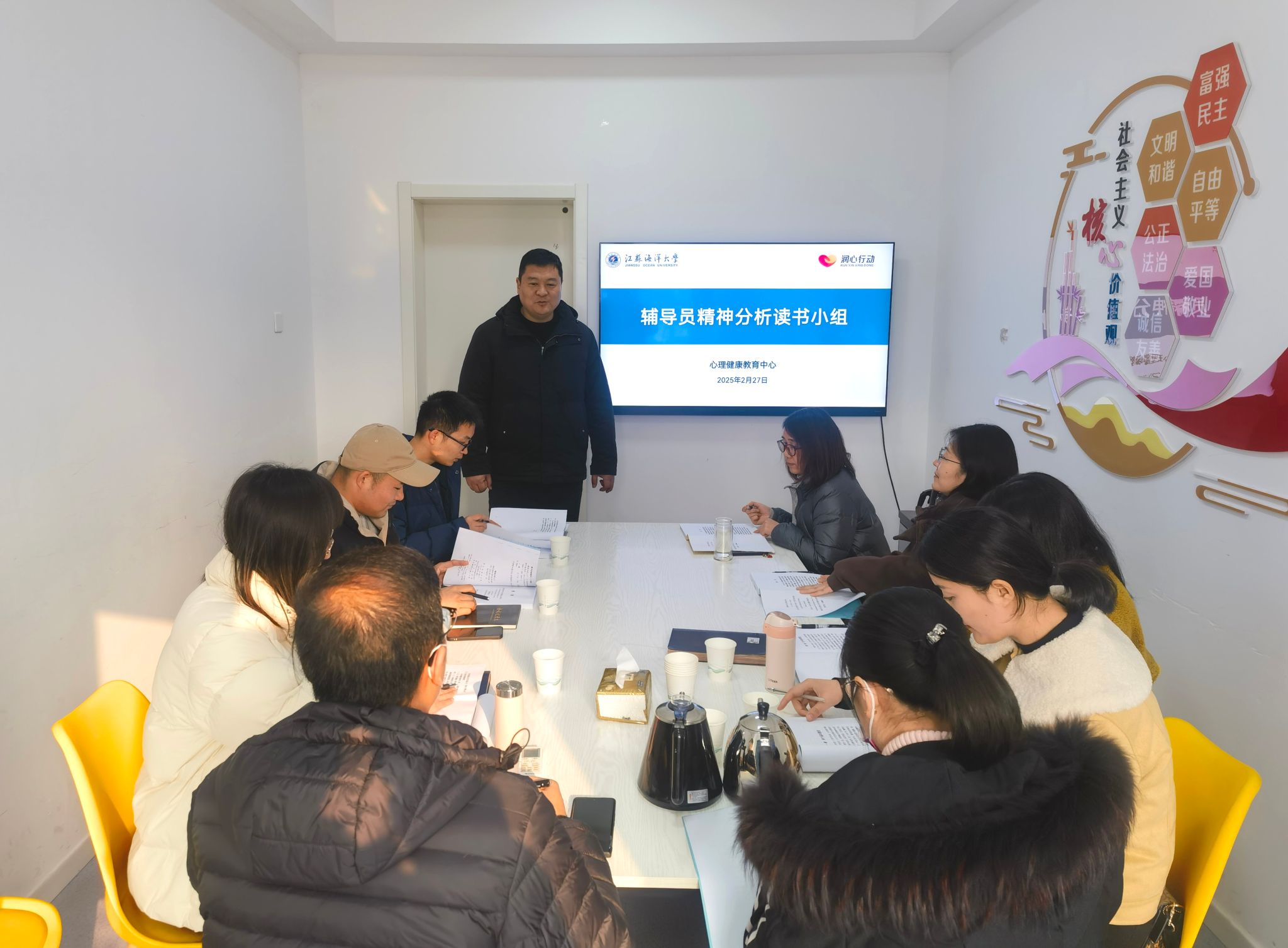 2月27日,心理健康教育中心在“一站式”学生社区组织开展辅导员精神分析读书小组活动,心理健康教育主任兼学生工作处副处长张岳、自愿报名读书小组的辅导员以及读书小组带领者解如华参加小组活动。