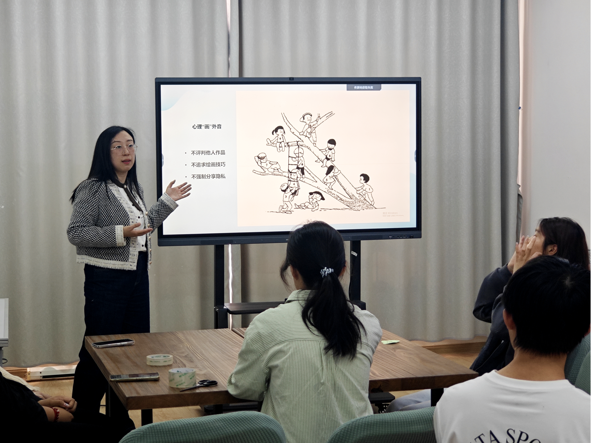 为促进大学生的心理健康,提升心理素质,学生工作处心理健康教育中心于5月7日举办了“房树人”绘画心理团体辅导,本次活动由我校兼职心理咨询师、连云港市未成年人指导中心主任汪亦飞带领。