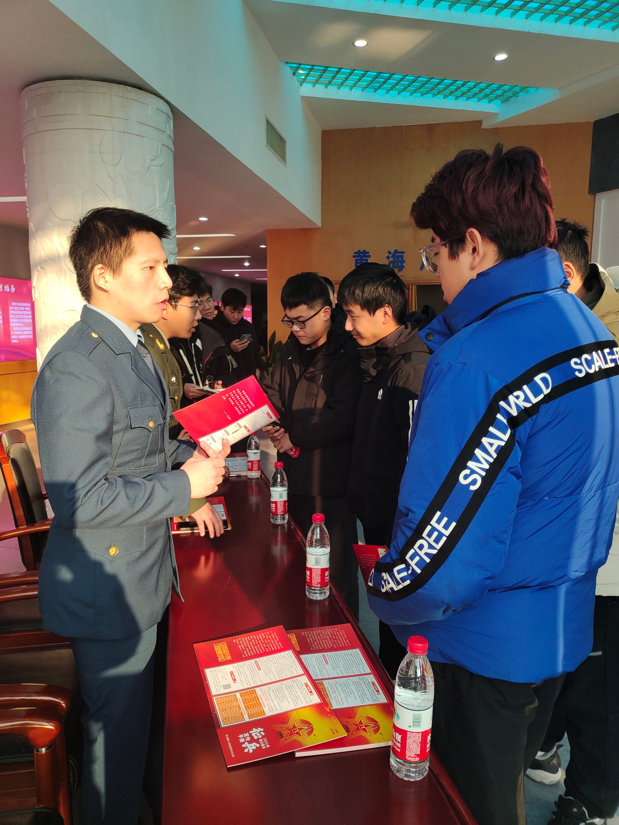 活动结束后,由海州区人民武装部和我校6名退役大学生组成的征兵宣传员,与同学们进行面对面征兵宣传,详细解读了新颁布的《征兵工作条例》,讲解军兵种知识,回答学生问题,鼓励引导同学们积极响应祖国号召、厚植家国情怀、立下热血之志,勇于磨砺自我、敢于奉献自我,以携笔从戎、投身国防的实际行动书写对伟大祖国的忠诚,在部队大熔炉中经受锻炼、增强素质、成就自我,用热血青春谱写人生的精彩篇章。